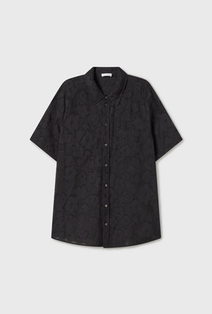 Clip Silk Short Sleeve Boyfriend Shirt Black