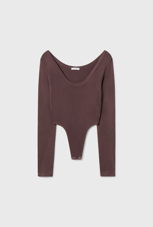 JERSEY MODAL LONG SLEEVE CUTAWAY BODYSUIT CACAO