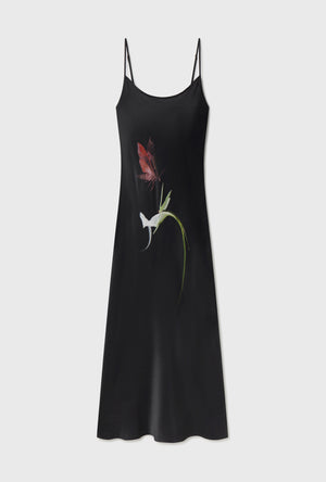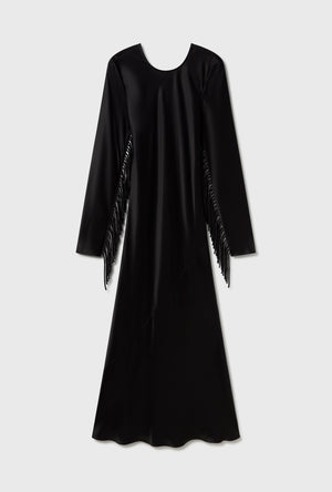 FRINGE FULL SLEEVE BIAS DRESS BLACK