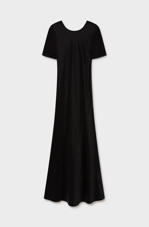 Short Sleeve Bias Dress Black Satin